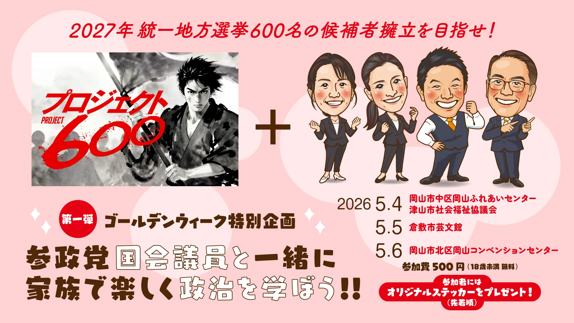 参政党岡山支部では令和5年春の統一地方選にむけ、私たちと一緒に岡山を変えてくれる候補者を募集しております。未経験でも大丈夫です。まずはお気軽にご相談ください。
